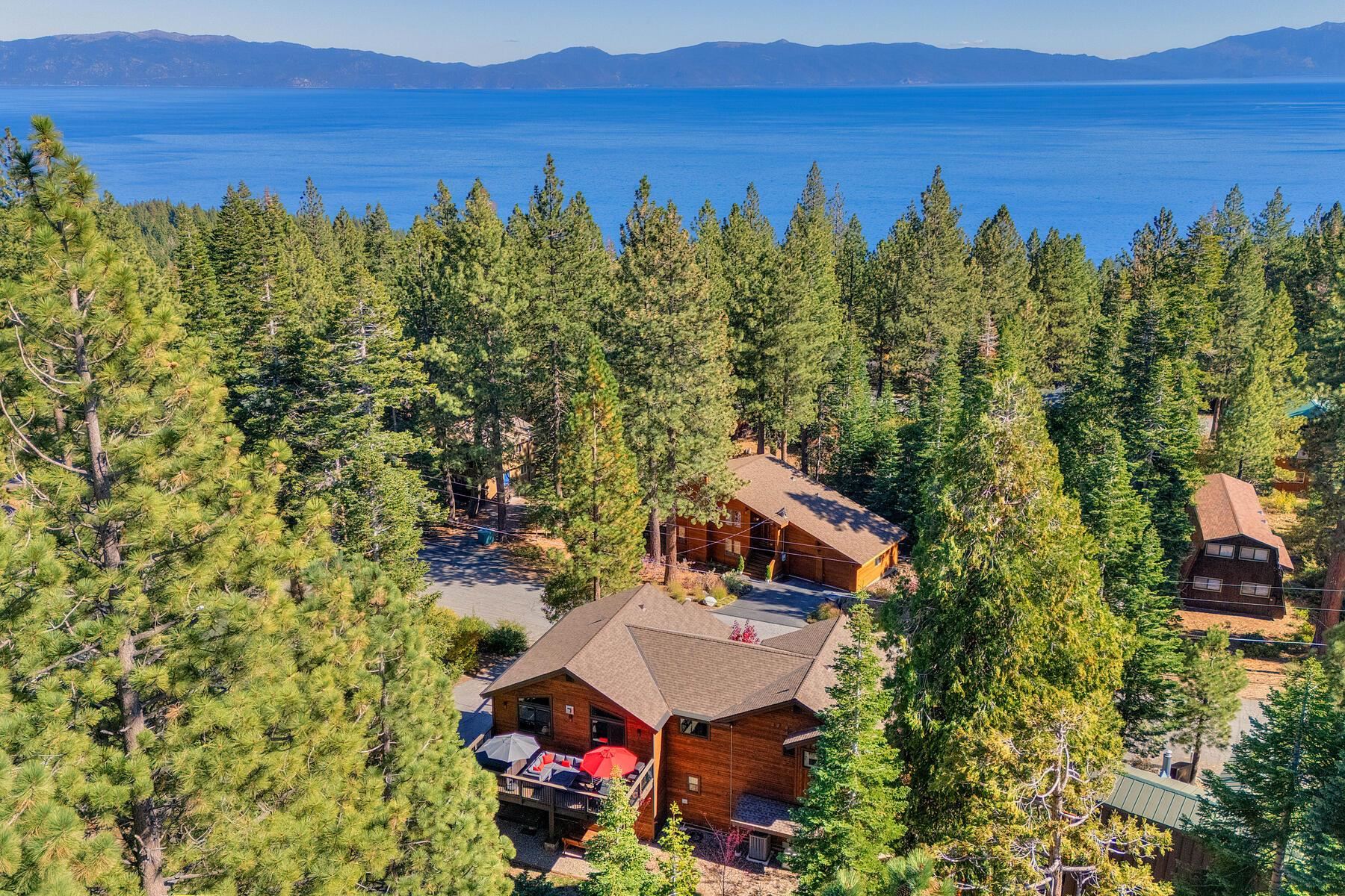 Nestled in the coveted community of Talmont Estates on Lake Tahoe's West Shore, this refined Tahoe residence blends elevated mountain architecture with the ultimate in modern comfort. The location allows for access to some of the region's most iconic outdoor experiences. Perfectly positioned near major trailheads, it's a gateway to Tahoe's endless recreation while offering the privacy and serenity of a forested setting. Step inside to a dramatic great room crowned with soaring ceilings, anchored by a stunning gas fireplace with an impressive stone surround--the true heart of the home. Expansive windows allow for peeks of the lake and filling the interiors with natural light and an unmistakable alpine ambiance. Step out onto the deck overlooking the woods, where evenings are best spent soaking in the hot tub beneath the stars. Surrounded by towering pines, maples & aspens, this is a place to unwind and immerse yourself in the Tahoe lifestyle. The open-concept layout seamlessly connects living, dining, and kitchen spaces, creating a sophisticated yet relaxed environment for entertaining and everyday living. The spacious kitchen boasts Viking appliances and gorgeous quartz countertops. Just off the great room you'll find the luxurious primary suite with walk-in closet and spacious bathroom with a huge soaker tub. There is a powder room and laundry room also on the upper floor. Downstairs you'll find a family room, another en suite bedroom, two additional bedrooms - one is currently set up as an office and third bathroom. Whether as a year-round mountain retreat or a luxury getaway, this west shore home combines timeless design, exceptional location, and elevated comforts including air-conditioning, security system and automatic generator. It's just minutes from the shores of Lake Tahoe, Palisades Tahoe, Alpine Meadows and Homewood ski resorts. LAKE ACCESS! This home offers membership into the coveted Lake Tahoe Park Association. The park is gated & staffed in the summer with 2-piers, buoy field, bocce, basketball, volleyball courts, kids play area, picnic tables with gas BBQ's, horseshoe pits, kayak & SUP storage too. HIKERS & MT. BIKERS! Just steps out your front door, there are numerous trailheads that lead to the Tahoe Rim Trail & Paige Meadows which offer miles of trails perfect for hikers, bikers, snowshoers & Nordic skiers.
