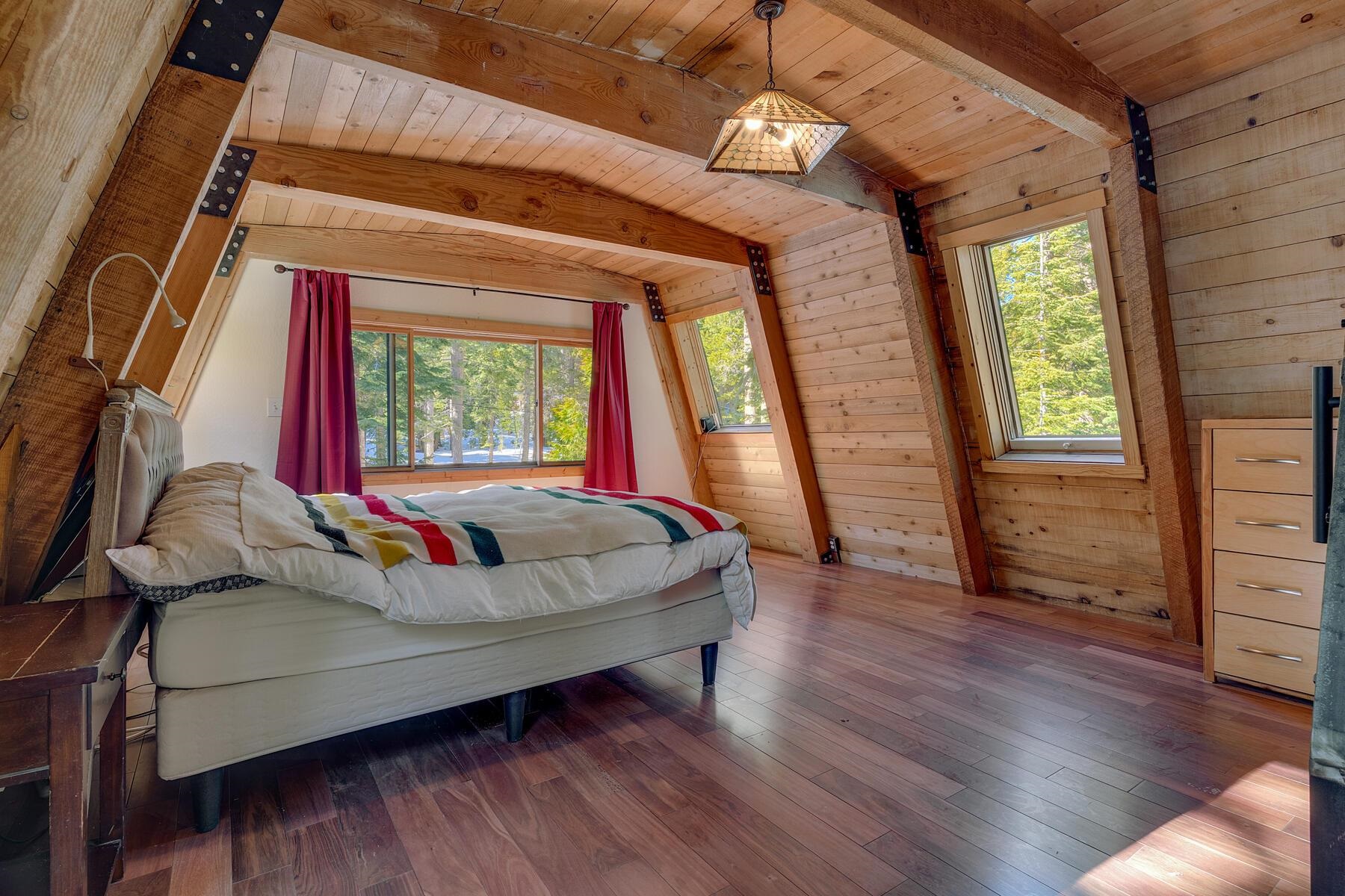 Welcome to the Lodge at Pine Ridge! Tucked among the towering pines of Lake Tahoe and situated next to Conservancy land, this inviting mountain cabin blends classic alpine charm with thoughtful modern updates. Soaring ceilings, beautiful hardwood flooring and an abundance of windows fill the home with natural light, creating a warm and airy atmosphere while framing serene forest views from nearly every room. The updated kitchen features modern finishes and ample workspace, making it as functional as it is stylish--perfect for preparing meals after a day on the lake or the slopes. Updated bathrooms offer a fresh, contemporary feel while maintaining the home's cozy mountain character. Designed for both relaxation and practicality, the home includes an oversized mudroom with generous storage--ideal for organizing skis, snowboards, hiking gear, and all your Tahoe adventure essentials. The open living areas flow effortlessly beneath the tall ceilings, creating a welcoming space for gathering with family and friends by the woodstove. Out back you'll find a Tigerwood deck that leads to a grassy lawn area. There is a nice sized shed and ample parking that can accommodate an RV or trailers. Whether you're seeking a peaceful year-round residence or the perfect Tahoe getaway, this cabin captures the essence of mountain living--comfortable, light-filled, and surrounded by nature. HIKING & BIKING TIME! Just a few minutes from your front door, there are numerous trailheads that lead to the Tahoe Rim Trail & Paige Meadows with miles of trails perfect for hikers, bikers, snowshoers & Nordic skiers. LAKE TIME! This home offers membership into the coveted Lake Tahoe Park Association, gated & staffed in the summer with restrooms, 2-piers, buoy field, bocce, basketball, volleyball courts, kids play area, picnic tables with gas BBQ's, horseshoe pits, kayak & SUP storage too.